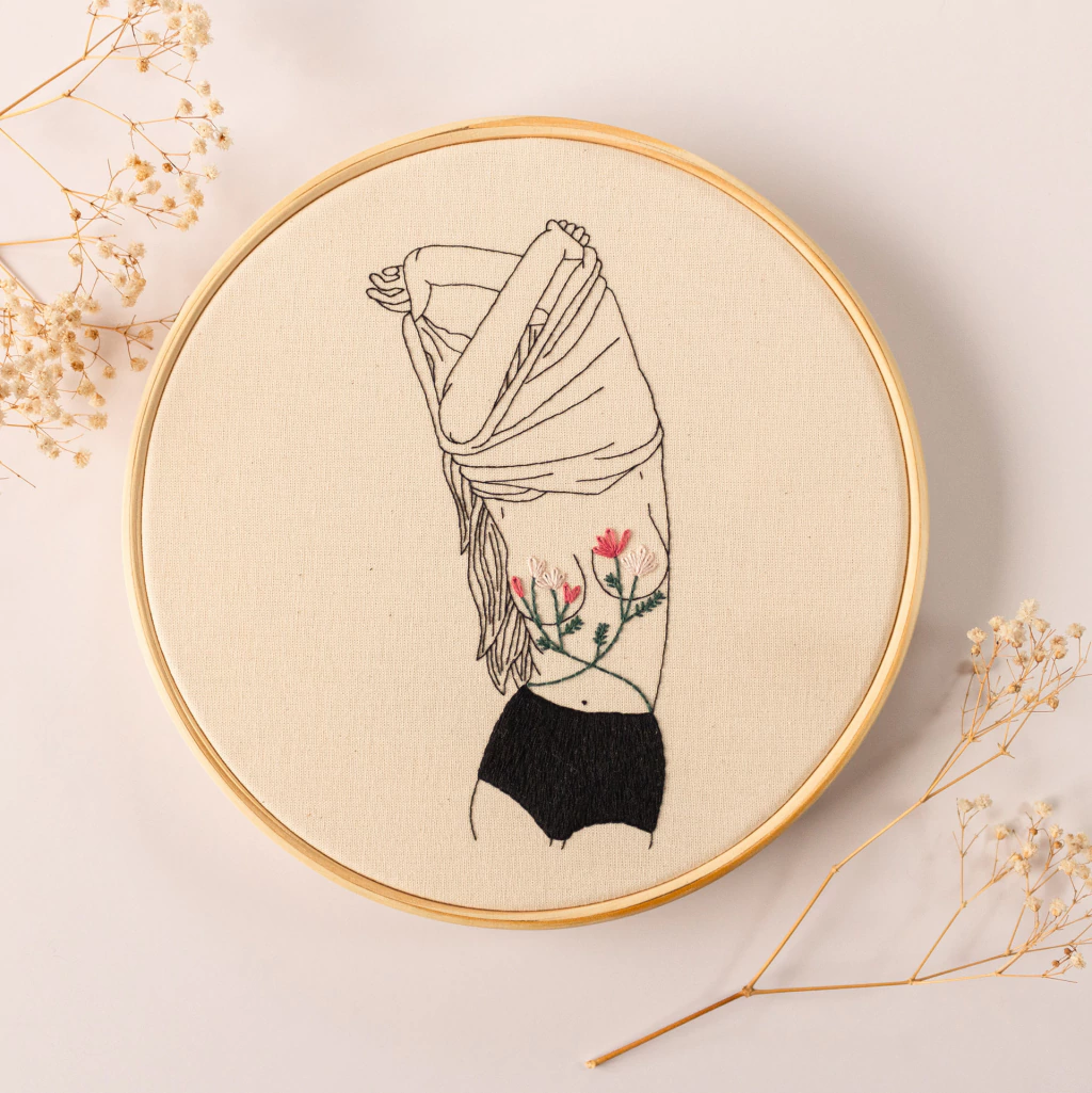 Quadro bastidor bordado à mão. Bastidor de madeira no tamanho de 20 cm. Tecido: algodão cru. Bastidor possui um triângulo de metal na parte superior para pendurar. Obs. Itens decorativos presentes nas fotos não acompanham o bastidor bordado. As cores podem ter variação conforme a configuração de tela do seu dispositivo. Por ser um produto feito à mão, pequenas variações podem ocorrer de uma peça para a outra. Bordado por Green Tea - bordado livre | Ilustração por DMC.